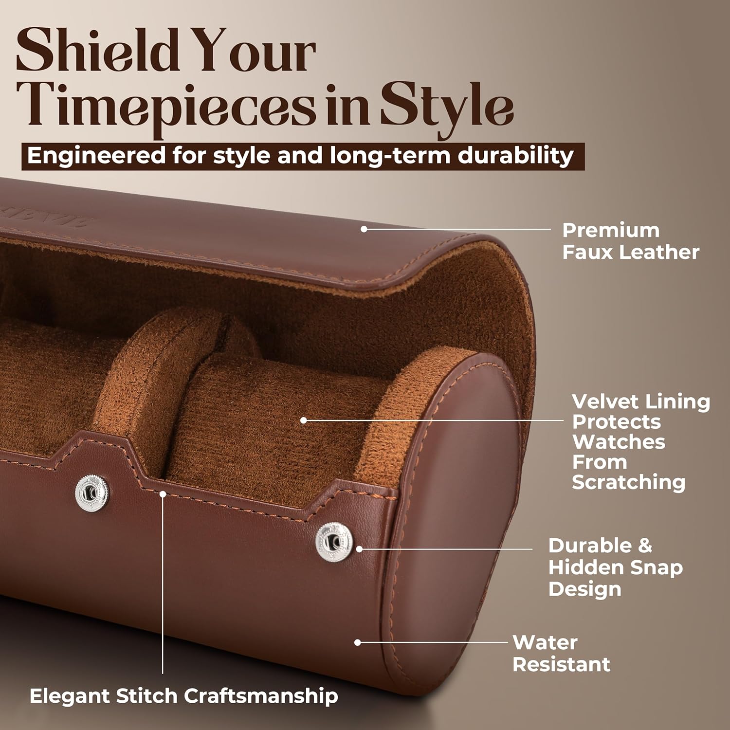 - DURABLE PROTECTION: Keep your watches secure with sturdy case construction and a reliable snap closure, safeguarding your cherished timepieces from dust, scratches, and impacts. Soft interior lining with plush velvet protects your watches from scratches and scuffs, keeping them in pristine condition. Designed to protect your watches so you can MAKE EVERY MOMENT A LUXURY.