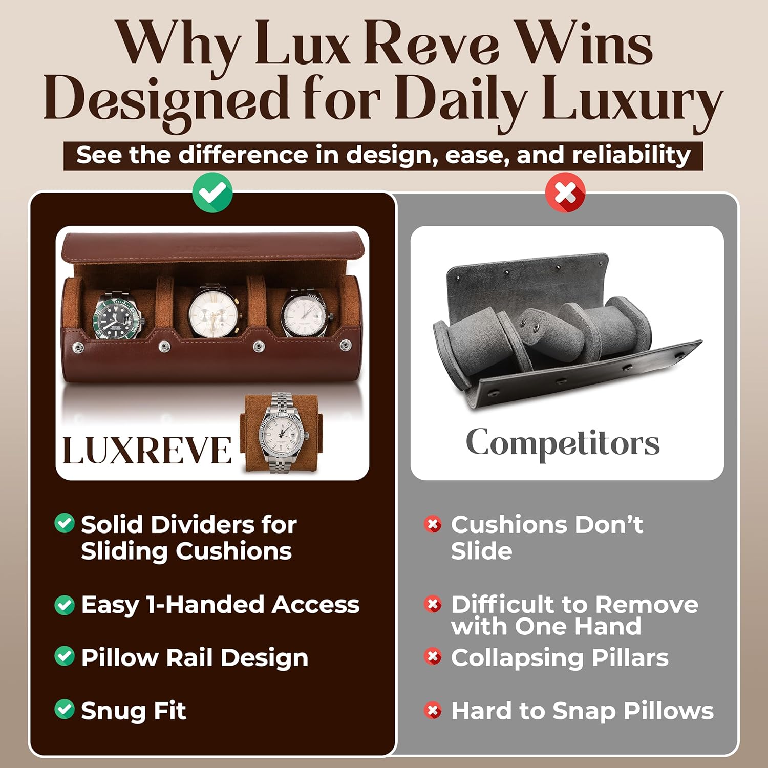 - PERFECT GIFT: A thoughtful present for collectors, watch enthusiasts, or anyone looking to organize their watch accessories in style. Comes in beautiful gift-ready packaging.The Lux Reve Travel Watch Case is ideal for birthdays, Christmas, anniversaries, Father’s Day, Valentine’s, or special occasions